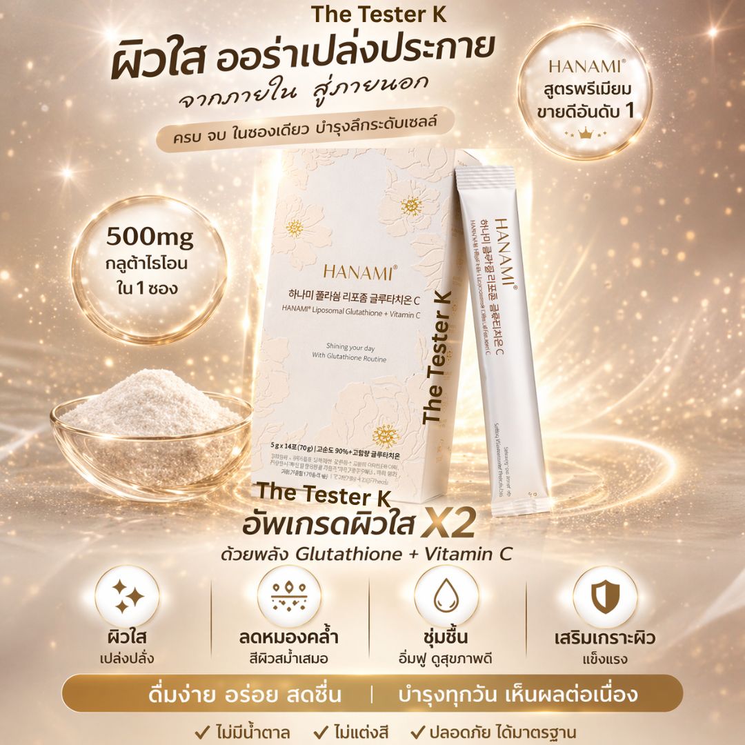 🌹พร้อมส่ง🌹สูตรใหม่✨ ผิวหมอง ไม่ใส? Hanami Glutathione C แบบไลโปโซม ดูดซึมดี ช่วยให้ผิวกระจ่างใส ลดฝ้า กระ จุดด่างดำ ผิวออร่าใสจากภายใน! ✨🍋
