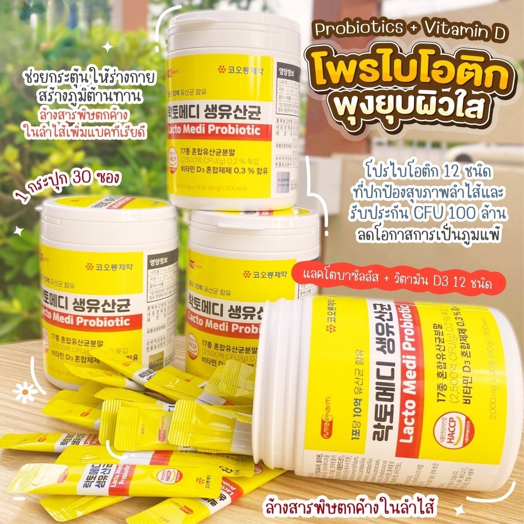 🌷มีส่วนผสมของโปรไบโอติก แบคทีเรียกรดแลคติก Lactomedi ของ Kolon Pharmaceutical จุลินทรีย์ 17 ชนิด มีจำนวนมากถึง 2,500 ล้าน CFU 🌟พิเศษโปรไบโอติกของแบรนด์นี้ ดูดซึมเร็ว🔥 ทำให้เราเห็นผลเร็ว ช่วยระบบขับถ่ายดี ลดอาการท้องผูก ผิวก็ดี พุงก็ยุบ หน้าท้องแบน