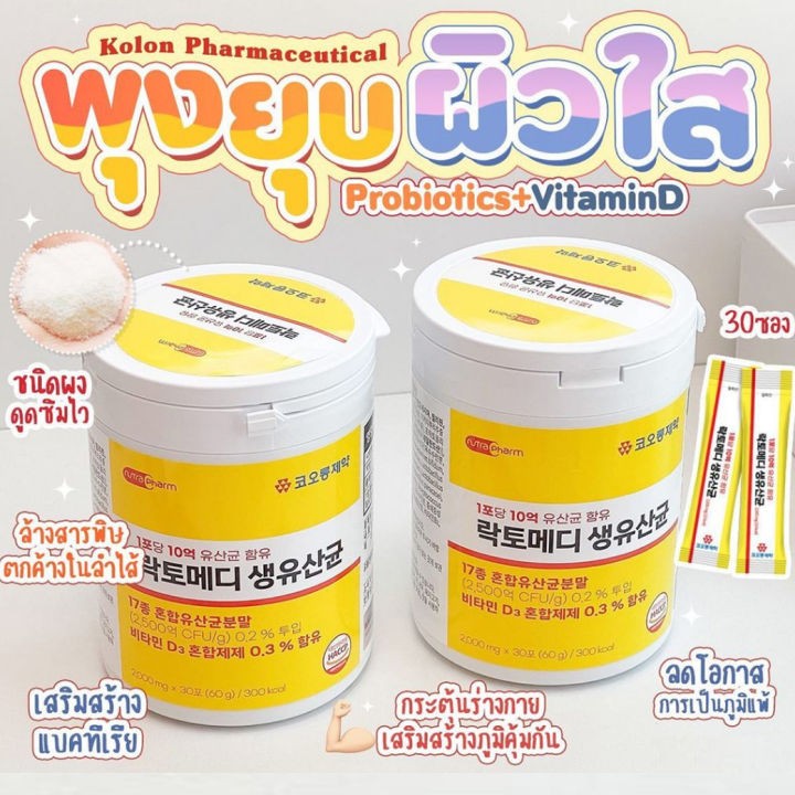 🌸KOLON Lacto Medi Probiotic+Vitamin D (1 กระปุก 30 ซอง) ทานง่าย รสชาติโยเกิร์ตเปรี้ยวหวาน