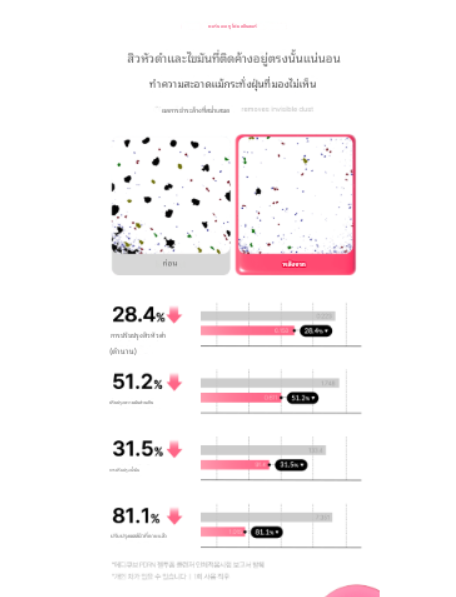 ✔️ ลดสิวหัวดำลง 28.4% ภายในครั้งแรก