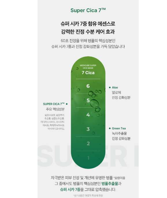 Super Cica 7™ = การรวม สารสกัด Cica ทั้งหมด 7 ชนิด ที่คัดมาเพื่อให้การ ปลอบประโลม + ฟื้นฟูผิว มีพลังมากขึ้นกว่าการใช้ Cica เดี่ยว ๆ