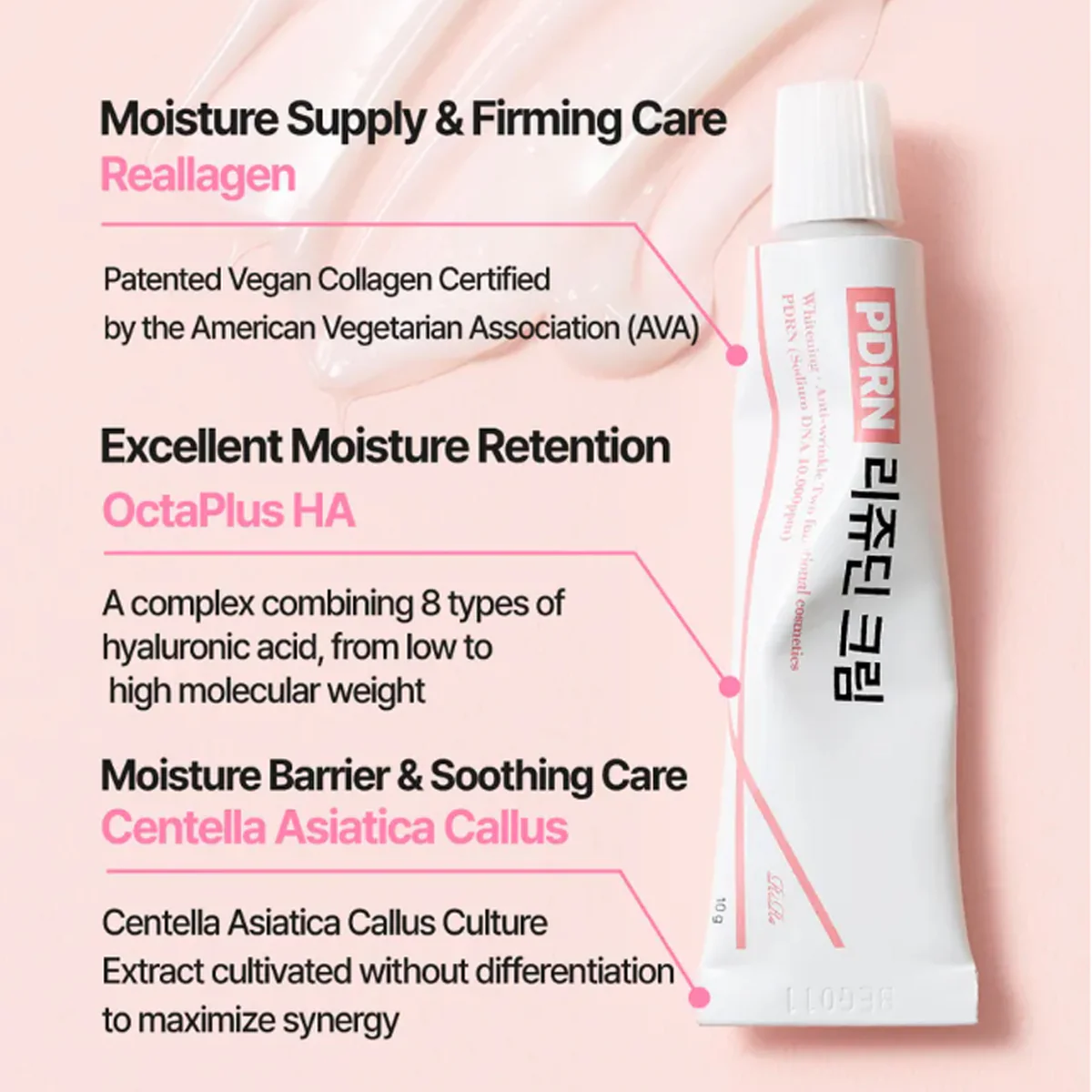 จุดเด่นคือมี PDRN (Sodium DNA) ซึ่งเป็นสารเดียวกับที่ใช้ในคลินิกผิว/สกินบูสเตอร์
