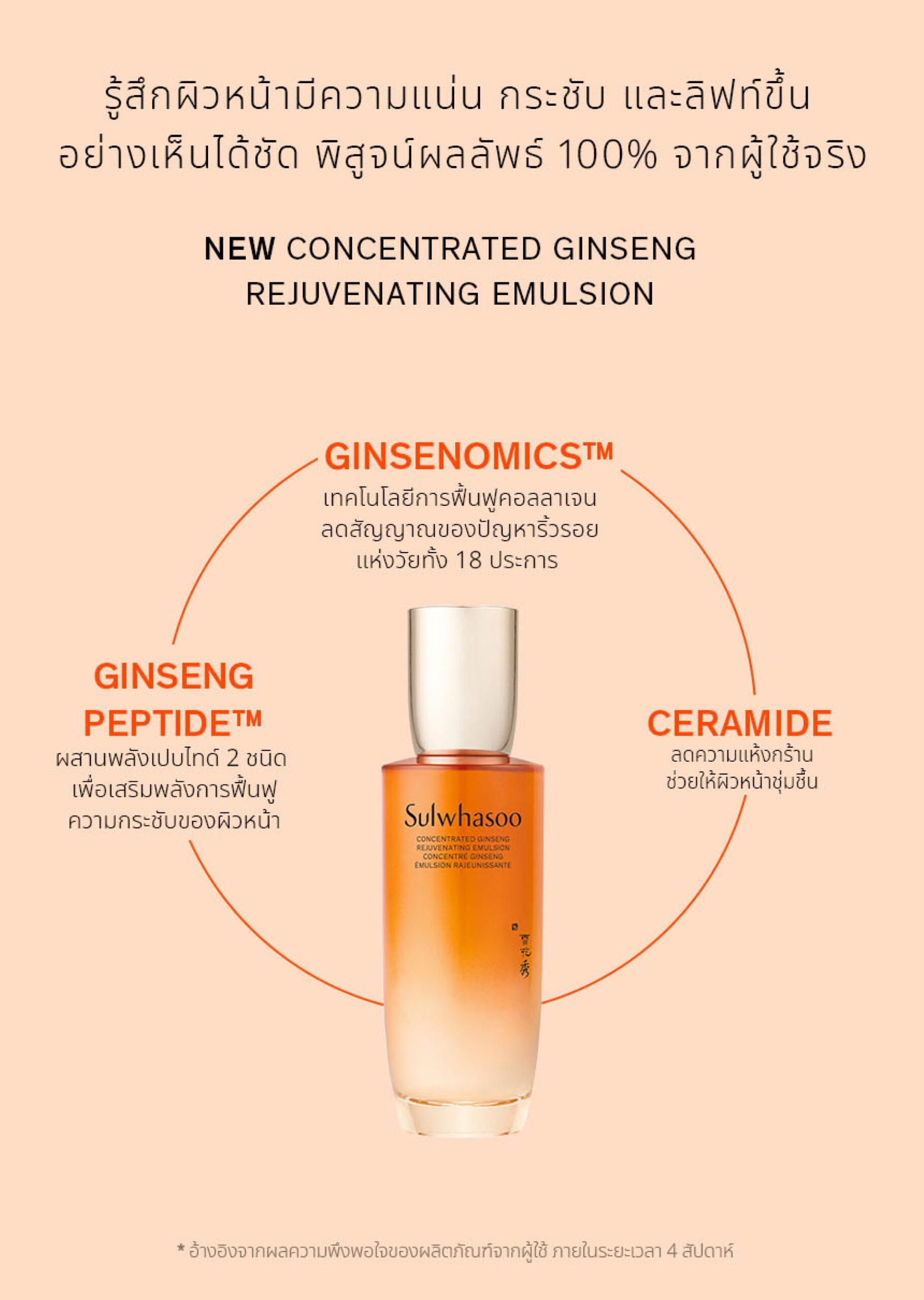 🌷เพิ่มพลังเปบไทด์ GINSENG PEPTIDE™ 2 ชนิด จากโสมเกาหลี และเปบไทด์อื่นๆ อีก 5 ชนิด เพื่อเสริมพลังการฟื้นฟูความกระชับของผิวหน้า สูตรแคปซูลโสมสามชั้น ซึมเข้าบำรุงผิวหน้าอย่างล้ำลึกถึงใต้ชั้นผิว เข้าจัดการสัญญาณแห่งวัย เพื่อผิวเฟิร์ม แลดูยกกระชับ ผิวอ่อนเยาว์อย่างยาวนาน