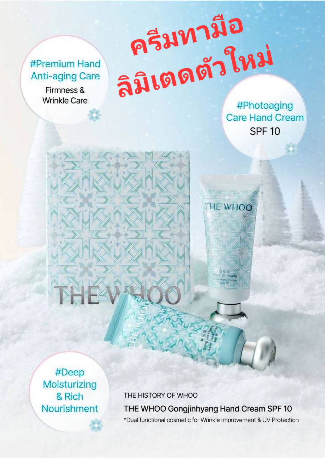 💢พร้อมส่ง💢 ปีหนึ่ง จะออกเซ็ตครีมทามือแบบนี้ แค่ครั้งเดียว “แฮนด์ครีมหรูจาก Whoo ที่บำรุงล้ำลึกพร้อมกันแดด SPF10—มือเนียนนุ่ม ดูอ่อนเยาว์ ไม่คล้ำเสียแม้เจอแดดทุกวัน!” ✨🤍